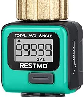 RESTMO Water Flow Meter with Brass Inlet Metal Thread, Measure Gallon/Liter Consumption and Flow Rate for Outdoor Garden Hose Watering, RV Water Tank Filling, Lawn Sprinkler and Nozzle Sprayer