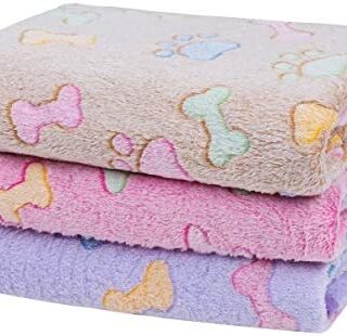 Dono 1 Pack 3 Dog Blankets, Soft Fluffy Fleece Pet Blanket Warm Sleep Mat Paw Print Design Puppy Kitten Throw Blanket Doggy Mat, Blanket for Dogs
