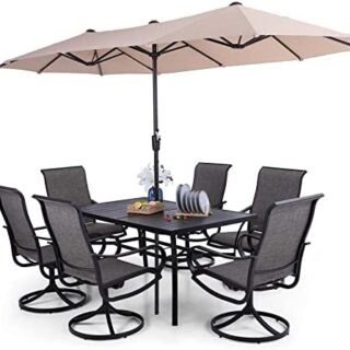 PHI VILLA 8 Piece Patio Dining Set with 13ft Patio Umbrella (Beige), 6 Outdoor Swivel Dining Chairs with Round Base & 1 Large Metal Dining Table with 1.9\" Umbrella Hole, for Lawn Garden Backyard