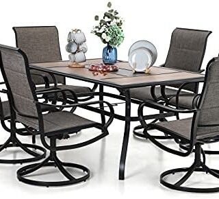 PHI VILLA 7 PCS Patio Dining Set, 6 Swivel Dining Chairs Padded Textilene Fabric and 60\"x38\" Rectangle Dining Table with Umbrella Hole(1.57\"), Outdoor Dining Set for Patio Lawn & Garden Backyard