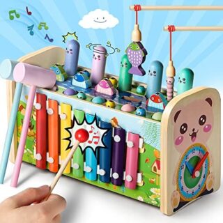 HopeRock Montessori Toys for 1 Year Old,7 in 1 Toys for 1 Year Old Boy,with 5 Tools, Whack A Mole Game, Xylophone, Fishing Game, Sensory Development Toy