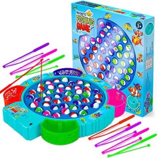 Fishing Game Play Set - 45 Magnetic Fish, 8 Poles & Rotating Board On-Off Music - Family Children Backyard Colorful Toy Games for Kids and Toddlers Age 3 and Up - Blue
